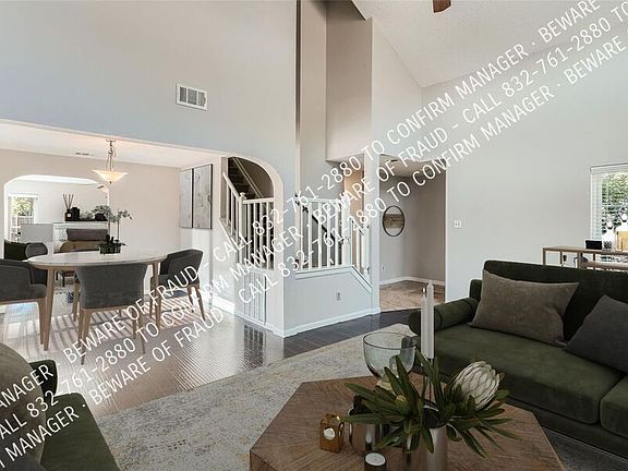Great schools and 5 minute walk to a walking trail that connects to Lake Ray Hubbard! Only 8 minutes away from George Bush so get to anywhere in the metroplex with ease. Not only does Rowlett offer nature lovers with a lake and hiking trails, there are plenty of popular restaurants and retail to suit your lifestyle. When you walk in, enjoy tall ceilings and natural light pouring in. Ample amount of space provided with two living rooms and a separate dining room, you will not lack for space in this home! The bright and spacious kitchen features granite countertops, tiled backsplash and large kitchen island with a built in breakfast bar. The brick fireplace makes a lovely focal point in the bright and open main living room. All bedrooms are conveniently nestled on the second floor, including the spacious primary suite. The primary suite is updated with white cabinets, glass encased stand alone shower, soaking tub and large walk in closet. Lovely and large backyard for outdoor living or dining. This is a must see! Any furniture shown is for illustrative purposes only and not included. PLEASE BE AWARE THAT RENTAL FRAUD AND SCAMS ARE ON THE RISE. WE WILL NEVER ASK YOU TO SEND MONEY TO US DIRECTLY.