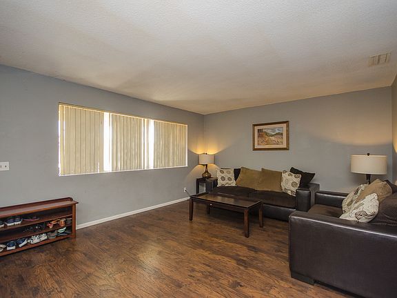 Great family home! Nicely laid out large single story home in an established quiet neighborhood located right in the heart of Hemet Within walking distance to schools and shopping. 3 bedrooms 2 full baths. Large living room and even larger family room with a cozy stone fireplace. Master bedroom is located on separate side of the home for extra privacy. Home has been recently painting and updated flooring has been installed. This home has been well cared for. Perfect first time home buyer starter home or possible a nice downsize to single story. Large back yard with covered patio which is perfect for entertaining.