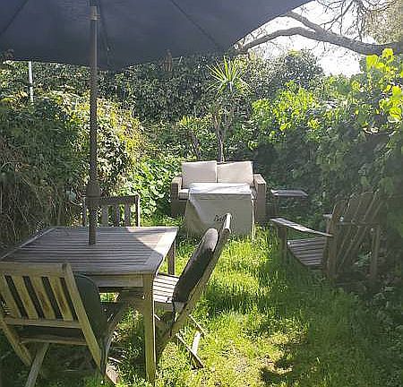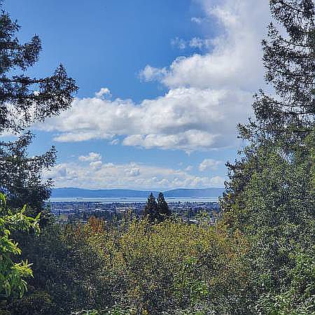 This apartment is the downstairs of a two-family100-year-old house in a very safe, small gated community on half an acre in the Oakland hills. It has one bedroom, and the rest is open-plan. I recently up-graded the kitchen with butcher block countertops and a gorgeous blue fridge! There's a big walk-in closet, hot tub, off-street parking behind a locked car gate, laundry a few feet away, waterfall and pond, a fabulous view of the Bay, and many flower gardens. There are also raised beds waiting to be planted with your veggies. A gardener would be my ideal tenant. I live in the back cottage, so repairs get made promptly. A bonus are the raccoons and possums in the woods. Must be seen to be appreciated - really! I ask for a deposit and 1st and last month's rents. No application fee. It is available now.