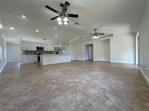Amazing location!!! This 3 bedrooms, 2 full bathrooms and 2 car garage, 2020 sq Ft living area. Spacious floor plan with vaulted ceiling, quartz counter tops in kitchen and baths, ceilings fans, double door entry, kitchen is open with plenty of counter space and wood cabinets + snack bar which open to the living (NEW stainless steel appliance package), electronic car garage opener,. Master suite with walk-in closet, laundry room with storage closet, large lanai, sprinkler system, near main roads SR 82, Gunnery Rd, Lee Blvd, Sunshine Blvd. REMODELED KITCHEN AUG 2024, NEW ROOF AUG 2024 and SEPTIC TANK NOV 2020.