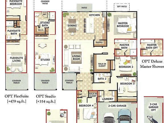 Brand New Copper Creek Home w/ Flexsuite! 3 car with room for RV, Country, Farm house elevations. Quartz kitchen counter tops, large island, stainless appliances, wood look tile floors.