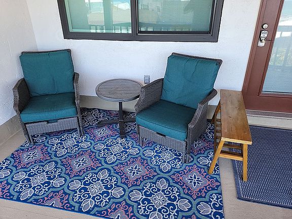 This unit is located less than 100 yards to beach access #13 to the left and beach access #14 to the right. This is one street over from the beach with no busy traffic to cross. This is a low rise unit on the third floor. There is no elevator so people with mobility issues should keep this in mind. Views from the porch outside the unit are stunning with plenty of emerald water to sit and watch. The eastern location of Thomas Drive is calm with less high rise traffic but does have many options within walking or driving distance. Parking is limited to one car at our designated space. This unit is a STR and rents well. Come get your toes in the sand in this oasis tucked away one street from the white sandy beach and emerald water!