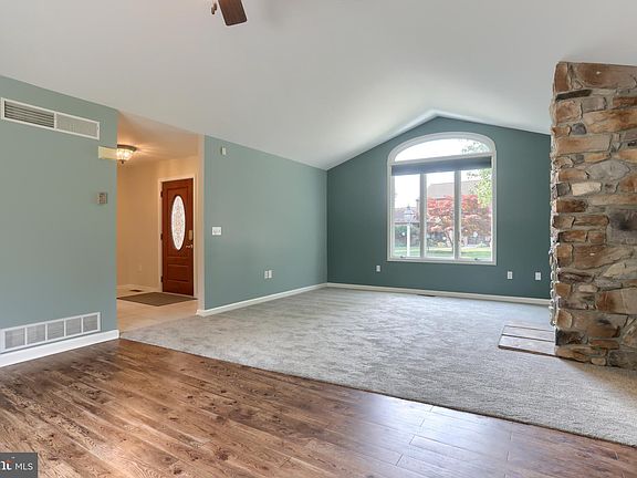 Well-maintained home located on a corner lot in the Forest Hills neighborhood in Central Dauphin School District offers one-story living at its best! The covered front porch welcomes you inside to the open living and dining rooms highlighting a cathedral ceiling, an expansive arched window and a wood-burning fireplace surrounded with beautiful floor-to-ceiling stone. From the dining area, a French door leads to the fenced-in rear yard offering a secure play area for children and pets. The eat-in kitchen features wood ceiling beams, natural gas appliances and a center island providing ample counter space and storage. The primary bedroom with walk-in closet includes an ensuite bathroom with an oversized tub and shower. The second and third bedrooms share the second full bathroom. The unfinished basement offers coveted storage space, and the high ceilings provide an ideal opportunity to add finished living area. With a new roof in 2022 and newly-installed carpet and luxury vinyl plank flooring, this home is truly move-in ready and is conveniently located near Hershey, Harrisburg, HIA, major routes, parks, shops and restaurants.
