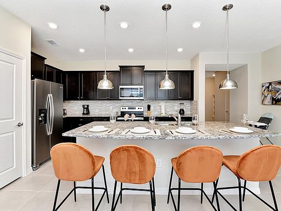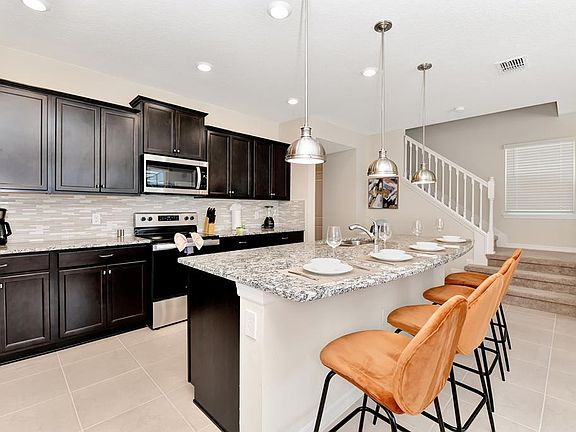 Welcome to the GATED, RESORT COMMUNITY! MOVE IN READY! This beautiful 5 bed / 4.5 bath pool townhome by Pulte, balances open gathering and dining spaces with private bedroom space. Including a second floor Owner's Suite with 3 surrounding bedrooms and a private first floor guest room. This new vacation home features a screen enclosed pool with covered lanai. Lawn maintenance and daily trash removal is included so you can also enjoy your maintenance-free vacation home with little worries. Located within the new gated vacation home community of Windsor Island Resort. Community amenities feature a Resort Pool, Children's Water Park, Lazy River, Double Water Slide, Covered Bar, Rental Cabanas, 9-Hole Mini Golf Course, Fire Pit with view of Theme Park Fireworks, Sand Volleyball Court, and Cornhole Court. Rent Includes high speed internet and TV cable. CALL US TODAY FOR A SHOWING! BE THE FIRST TO LIVE IN THIS BEAUTIFUL HOME!