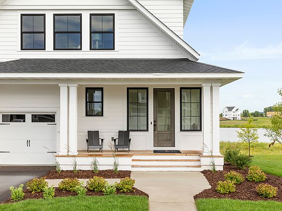 Architecturally designed modern farmhouse created exclusively for Robert Thomas Homes by notable Minnesota architectural firm Albertsson Hansen ArchitectureExterior is detailed with LP SmartSide® prefinished siding, including wrapped windows and trim boardsGathering room features 10? ceiling, fireplace, a wall of windows and optional built-in cabinetryOptional gathering room painted crown molding and coffered ceilingFormal dining room features optional built-in buffet and could be optioned as a first level bedroom or officeKitchen features large center island with sink, banquette for informal dining and adjacent resource room/cooks office with large walk-in pantryMudroom entry off garage with walk-in closet and optional bench and drop zoneOptional deck off kitchen and dining area couple also be optioned as a covered screen porchUpper level features 4 bedrooms, 3 baths, bonus room, and large upper level laundryGrand upper level owner's suite with double door entry and entrance hall dividing owner's bath, walk-in closet and owner's bedroom to accommodate varying schedules of partners*Home prices refer to starting from price and do not include optional home elevations, options, upgrades, or lot premiums. Prices, square footage, and availability are subject to change without notice. Photos, virtual/video tours, and/or illustrations may not depict actual home plan configuration. Features, materials and finishes shown may contain options that are not included.