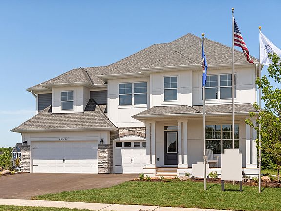 Modern architect-designed two story farmhouse with full front porchMultiple elevations options in LP SmartSide® prefinished siding with 4-sided architectural detail, including wrapped windows and trim boardsSpacious gathering room with fireplace and optional built-ins opens to informal dining and kitchenFormal dining room or optional flex room off main foyer entryLight-filled kitchen features wall of windows, abundant cabinetry, large center island with sink, walk-in pantry, and optional wine barOptional deck or patio off kitchenMain floor resource area adjacent to gathering room with optional built-in deskRear mudroom with optional built-in benches features large walk-in closet and half bathGenerous owner's bath features soaking tub, separate vanities, linen, soaking tub, separate shower, and large walk-in closet with windowOptional owner's bath with freestanding tub, walk-in shower, and dressing tableFinished staircase to lower level with space for future family room, bedroom, bath, and storage room*Home prices refer to starting from price and do not include optional home elevations, options, upgrades, or lot premiums. Prices, square footage, and availability are subject to change without notice. Photos and/or illustrations may not depict actual home plan configuration. Features, materials and finishes shown may contain options that are not included.