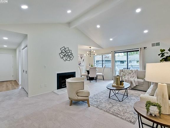 Nestled in the heart of central Fremont, this meticulously maintained top-floor residence offers a blend of comfort and convenience. The property boasts a generous living room with soaring vaulted ceiling; Expansive balcony, perfect for relaxing or entertaining guests; The bright kitchen features newer appliances including Cooking hood; Range, Dishwasher, Branded refrigerator; ample pantry space; With the 2020 upgraded Electrical subpanel, the house is adorned with LED recessed lighting throughout, elegance and cost savings. Center heating and A/C system installed in 2022; The master bedroom showcases a spacious walk-in closet; Inhouse laundry with 2020 installed LG washer and dryer; In this safe gated community, the property offers a one-car garage and an additional assigned parking space. There’s also easy access to street parking. Located in a quiet and friendly neighborhood, the HOA covers community swimming pool maintenance, Trash and water bills. New roof replaced a couple years ago. Walkable distance to plazas, many restaurants; Easy to commute to Fwy 880 & 680 and Bart.