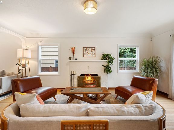 Welcome to the cutest cottage on North Colonial Ave! Nestled in the sought-after tree-lined streets and tight-knit community of the Overlook Triangle, this home is filled with character. As you step inside, you’re greeted by an inviting living room centered around a wood-burning fireplace (perfect for cozy evenings), which flows seamlessly into a bright dining area and an additional family room. French doors extend from the family room to a private backyard for casual indoor and outdoor living. The thoughtfully designed floor plan includes a remodeled kitchen + nook that stays true to the aesthetic of old Portland charm, while offering modern functionality. The main level also features a comfortable bedroom and a full bathroom. Upstairs, you'll find two additional bedrooms and a flex space, all filled with beautiful natural light. A large partially finished basement offers even more potential. With ample storage and room for expansion, it's perfect for creating additional living space to suit your needs. One of the standout features of this property is the detached garage, which has been transformed into a versatile studio space. With oversized windows and exposed wood beams, it’s ideal for use as a home office, gym, or creative space.This home is a perfect blend of comfort, style, and opportunity, offering a peaceful retreat in a prime location. Sooo many updates in the last 5 years: kitchen, bathroom, detached studio space, plumbing, water heater, electrical wiring, 200 amp panel w/ EV charger, see full updates list for more.