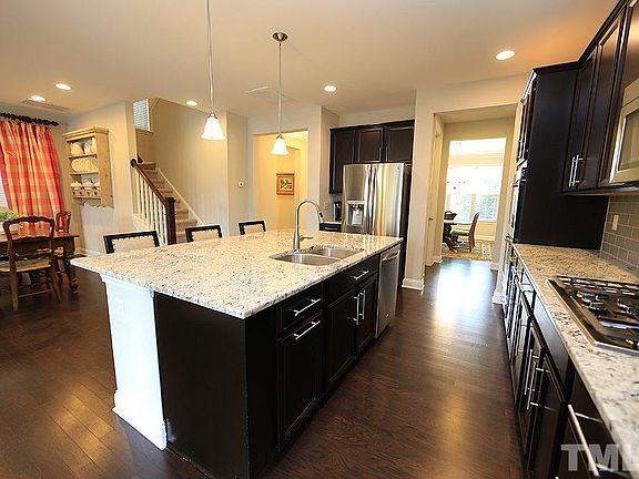 Easy living awaits you in this gorgeous 4 bedroom, 2.5 bath home. Features include a gourmet kitchen with huge island, main floor office, lots of storage, low maintenance landscaped and fenced backyard. Located 1 block from the beautiful Amberly amenity center where you can enjoy 2 swimming pools, water slide and children's water play structure, playground, fitness center, dog park, indoor basketball and volleyball. Minutes to shopping and restaurants, RDU, NC540 and I40.