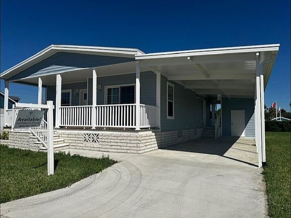 55+ age qualified community. The Santa Rosa model is unique as it is the only home that has a large front porch that is the entire width of the home. This beautiful porch is a great place to relax and enjoy the wonderful breezes while chatting with neighbors as they walk by. This community is designed for an active lifestyle as it has a huge amenity package that is no additional cost to our residents, and the entire community has sidewalks creating an environment for comfortable walking for yourself and pets. You enter the home into a beautiful open plan with a large island that accommodates 4 stools. Directly off the kitchen is the dining room that has sliding doors that lead out to the large front porch. This is a 3 bedroom 2 bath home with the primary having an ensuite large bathroom with a high end walk in shower. This primary bathroom is larger than most and has a huge linen closet in addition to the walk in closet in the main bedroom. Having storage will not be a problem in this home. Looking to entertain, this home is designed for it. A full 5 piece stainless steel kitchen package is included, the designer gooseneck faucet and large stainless farmhouse sink are show stoppers, and the solid floors throughout the home make for easy maintenance.The home has a shed directly off the carport and the home sits on an oversized lot and is available for immediate showing. Looking for an active 55+ community Forest Lake Estates is the place for you. Call for a private tour.