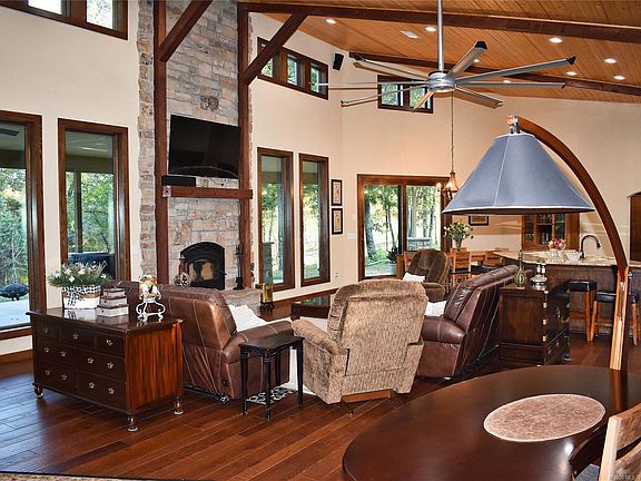 Must-see 120 acres mostly wooded but with pasture suitable for grazing or hay production also. Minimal fencing work needed to be livestock ready. Trails throughout. Deer, turkey and small game abound. Readily apparent in and out the beautifully apportioned custom home was constructed with leisurely solitude as well as entertaining guests in mind from the fully open living space design to the separation of its two bedrooms with private bathrooms. Additional bathroom for guests. Call for full details!