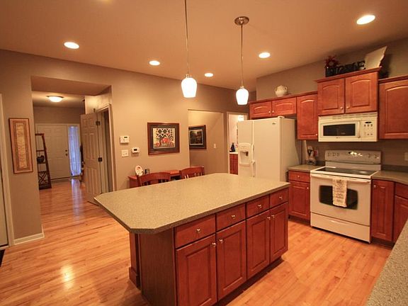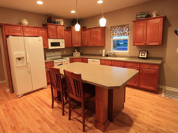Fantastic 2 story home on corner lot on over half an acre of land. Backs up to city park land and easy access to bike and walking trails. Beautiful maple cabinets in spacious kitchen with solid surface countertops and breakfast bar. First floor has lovely maple 3/4 inch hardwood floors. Formal dining room could be converted to an office. Butlers pantry, half bath and huge laundry room with more storage! Eat-in kitchen in additonal to breakfast bar area, and living room on first floor. Custom built California closet system in huge walk-in closet in master bedroom. Large master bath with dual sink vanity and separate toilet room. 3 additional bedrooms share full bathroom. You will love this private backyard with newer storage shed, custom built-in grill area and firepit. House faces west so the shade is on the backyard for cool summer nights to enjoy the firepit! Finished Basement with 9 ft ceilings has half bath and kitchen area with fridge and sink (appx 950 sq feet finished space).