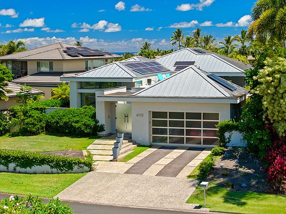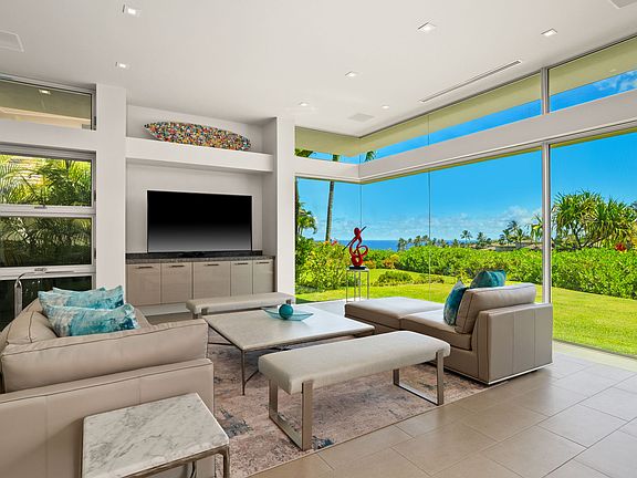 This rare single-level contemporary home built entirely of structural steel, concrete and glass is located on the Prince Course is designed for ultimate privacy and sweeping ocean views. Completed in 2022, tucked behind glass entry gates you arrive into a secluded sanctuary. Discover an oasis with a central courtyard, lighted pool ,outdoor kitchen and a stunning Skydeck with mountain views. Floor-to-ceiling glass in the living room frames panoramic vistas of the ocean and golf course while maintaining complete privacy from adjacent homes. The den can also be used as a 3rd bedroom.