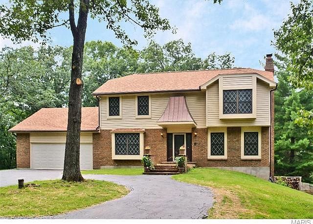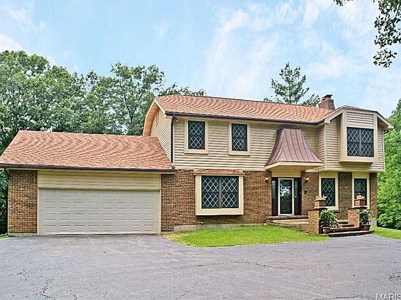 For more info or to schedule a private tour please call 636-229-8746 StLouisHomesByGina.com... USDA 100% financing eligible... Secluded country privacy & charm just 1 mile from Manchester Rd in Wildwood/Pacific. 2.64 WOODED ACRES bring wildlife to your doorstep. 4 bedrooms, 2.5 baths, 2-car OVERSIZED GARAGE on circle drive. Soaring 2-story entry opens to HUGE LIVING ROOM with wet bar, brick fireplace & gorgeous views of acreage. No carpet in this updated home: WIDE PLANK HARDWOOD on main level, newer bamboo in bedrooms. Watch kids play outdoors from the RENOVATED KITCHEN with classic white cabinets, STAINLESS STEEL APPLIANCES, updated BRONZE lighting & fixtures. Spacious dining room, powder room & convenient laundry/mud room. Upstairs master suite with walk-in closet & WINDOW SEAT. Hall bath, enormous linen closet & 3 additional bedrooms: one with double closet & window seat, another with BALCONY overlooking entry (ideal home office). NEWER ROOF, siding & gutters. Tudor-style Pella windows. WALKOUT LOWER LEVEL, rough-ins for bath & fireplace. Close to 4000 acres of scenic parks!