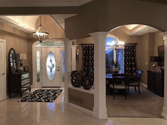 - Wet Bar, Breakfast Bar, Walk-In Closet(s), Vaulted Ceiling(s), Great Room, Beamed Ceilings, Stone Counters, Eat-in Kitchen, Formal Dining Room, Crown Molding, Entrance Foyer, Tray Ceiling(s), Open Floorplan, Bar, Tub/Shower Combination, 1st Bdrm En Suite, Countertops-Solid Surf, Ceiling-9+, Main Level Bedroom Suite, Stand Up Shower, Tub and Separate Shower, Twin Sink Vanity, Utility Sink, Custom Cabinetry, Jet/Garden Tub, Built-In Speaker System, Built-in Desk, Jack & Jill Bath