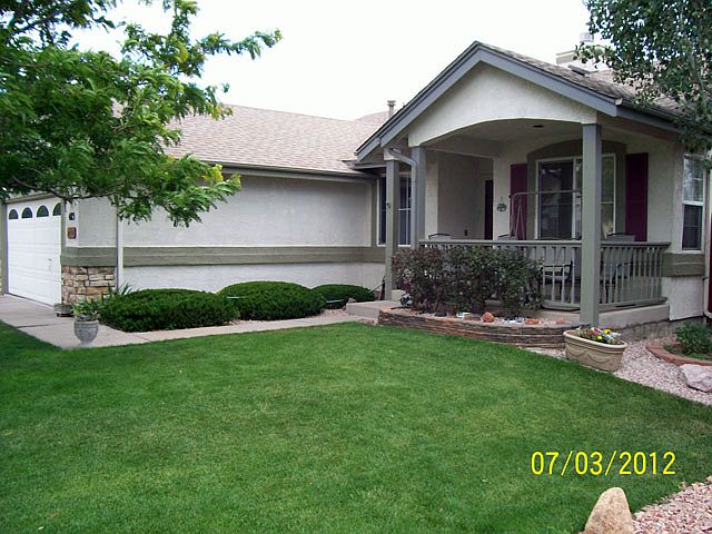 This home has been recently updated with new carpet (life-time transferrable warranty) and porcelain tile in entrance way, kitchen, laundry room and both bathrooms. New bar top and kitchen counter with stainless steel under-mounted deep sink with expensive faucet and new garbage disposl. New paint throughout interior. Ceiling fans in the family room and each bedroom. Gas -log in the fireplace. The front and back yards are immaculate with a total of four trees. There is a full length awning covering the back porch and a nice front porch big enough for a 2-person swing and additional chairs. Front and back auto sprinkler system. Backyard is enclosed with a 6-ft privary fence. A must see. Neighborhood Description Villages at Sand Creek has an active Home Owner's Association to help keep the neighborhood looking great. It's an enclosed community with two entrances. People take pride in their homes and yards and it shows. Our community is centrally located between two major city thorough fares (Academy Bld and Powers Avenue), is less than 2 miles west of Peterson, AFB, and is within 10 minute drives to two major shopping complexes.