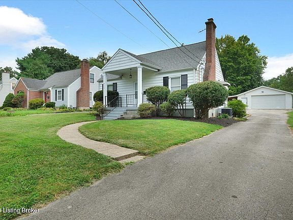 Welcome to this cape cod style home with a HUGE 2 ½ car, detached garage in desirable St. Matthews. Come inside from the covered porch to a living room with hardwood floors, wood burning fireplace and coat closet. Wait until you see the kitchen! Measuring at 20' x 18' with skylights, and island seating 4 people. There's built-in storage offering 2 desks and room for a harvest table. All kitchen appliances remain. A rare find in St. Matthews is a 1st floor Primary Bedroom with full bathroom and 2 closets (one is walk-in)! Bedroom 2 is across the hall, separated by a full bathroom with timeless black/white tile. Bedroom 3 is on the second floor, has two closets and built-in shelving. The basement has a living room with wooden built-ins and closet. A large unfinished area houses the laundry, mechanicals and storage. The 200 amp electrical panel has an automatic transfer switch so you can hook up your portable generator in the event of a power outage. The high-efficiency furnace and air conditioner compressor were installed in 2021. Enjoy the back deck with pergola and the fenced yard is a plus for furry friends. Raised planting boxes are ready for next Spring's planting. Wait until you see the garage and storage shed-- it's a hobbyist's, mechanic's or woodworker's dream! The garage has 200 amps of electrical service, is 25'6" x 28'6". There's a carport that can tandem park 3 cars and on the back of the garage is a storage shed measuring 9'6" x 25'.