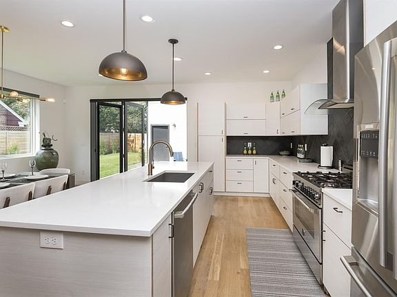 Stunning Modern home with large yard for the price of half a duplex in Highlands and Sunnyside with tiny little yards - Mountain View is where the development is headed with 6 new projects being built from $900-$1.2 - This custom home features a floating steel staircases with stunning steel rod floating walls. Open concept first floor with an accordion style Nanawall - door to the back patio - fantastic in indoor outdoor entertainment flow. The master and 2 other bedrooms located on the second level are all en-suite with bathrooms for each room. One bedroom on main level. Almost 500 square feet of ground level patio space, 42 foot deck on second level and 730 square foot roof top deck with protected covered portion for all weather entertainment. High end chefs kitchen appliances including a Bertazonni 5 Burner Oven/Stove. Custom bathroom cabinets and sinks that are different in each bathroom but the same materials creating great flow. 11 blocks to Tennyson street.