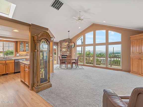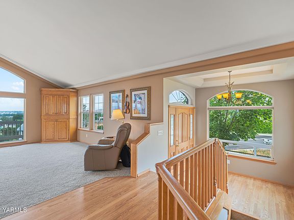 Beautiful home with wonderful architectural details, fine finishes and lush landscaping to compliment the exterior design. Entering the home you will find a formal foyer that leads to a vaulted great room that is open to the kitchen and dining spaces. Walls of windows facing the West bring in the views of downtown Yakima and the mountain ranges with gorgeous evening sunsets. The primary suite is adjoined by an office space and finished with 3 closets and full bathroom. Lower level is a daylight basement and great space for cozy winter nights. The wraparound deck affords plenty of room for outdoor BBQ'S and entertaining. The garage has a finished temperature-controlled wine cellar space. There is a 24X24 heated garage/workshop for storing those toys or a hobby space. RV parking and more!