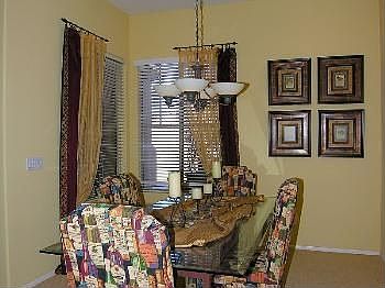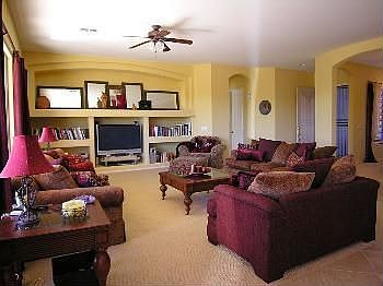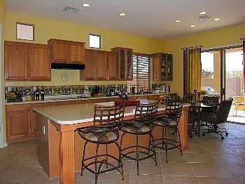 Beautifully decorated and fully furnished 4 bedroom 2 bath single level home. Large open floorplan with formal dining, spacious great room and upgraded kitchen with a large center island and breakfast bar. 3 car garage with built-in cabinets and large covered south facing patio. This home backs to a large wash offering privacy and desert views.