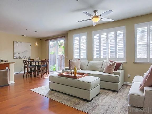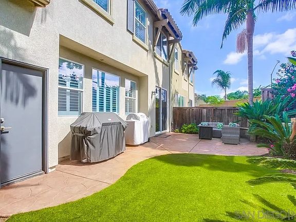 Discover your dream home in the highly sought-after Mystic Point community within Calavera Hills. This immaculate 3-bedroom, 2.5-bathroom corner unit townhome is move-in ready and boasts numerous upgrades. You'll appreciate the convenience of two attached garages with epoxy flooring and an open, well-lit floor plan. Inside, the home features elegant maple flooring and a soothing neutral color palette. Enjoy the benefits of dual-pane windows with shutters, a cozy fireplace, ceiling fans, recessed lighting and central air and heat. The inviting kitchen offers designer cabinetry, granite countertops and stainless steel appliances, all complemented by ample storage space. The primary suite is a retreat, complete with a separate tub, shower and a generous walk-in closet. Step outside to a private backyard oasis, perfect for entertaining and enjoy the peace of having no rear neighbors. The community amenities include a beautiful pool, and you'll have direct access to the Calavera Hills Open Space preserve and Lake Calavera, boasting over 5 miles of walking and biking trails. With top-rated schools nearby, including Calavera Hills Elementary, Middle Schools and Sage Creek High School, as well as the Calavera Hills community center within walking distance, this home truly has it all. Don't miss out on the opportunity to make it yours!