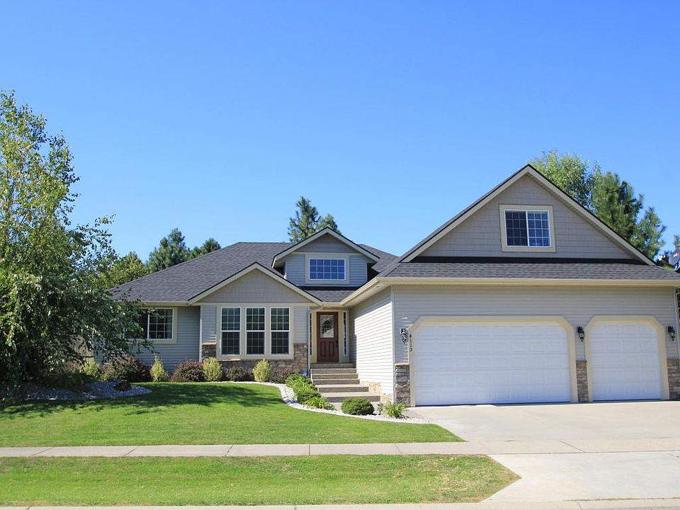 SINGLE LEVEL HOME WITH A BONUS ROOM, 3-CAR GARAGE, RV PARKING, ROOM FOR A SHOP and SITUATED ON .35 ACRES! Built in 2004, 3BR, 3BA, granite, tile, wood floors, natural gas fireplace, central A/C, all appliances included, security system, water softener, bonus room, landscaped with natural rock fire pit, a dozen fruit trees and we’ll established berry bushes with an immaculate home and close to Canfield Mountain with lots of trails and Canfield Park!