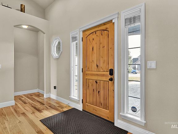 Starting with a charming front entry that welcomes guests into a bright & warm interior, this immaculate home boasts vaulted ceilings, hardwood floors, granite counters, tiled accents & beautiful dark wood cabinetry thru-out. The kitchen offers ss appliances, 5-burner gas stove, corner pantry, and ample counter space flowing perfectly to the spacious great room, ideal for entertaining & serving meals at the convenient breakfast bar. Main level master has dual sinks, jetted tub and walk-in closet. Upstairs youll find the 4th bedroom with full bath and a huge bonus room with its own dedicated hvac zone. Outside is just as impressive, with a covered patio stubbed for bbq, stamped concrete, mature landscaping and excellent curb appeal. Youll love having no back neighbors and a common area on the side of the house. Located in one of the hottest areas in Meridian, and within easy walking distance of Settlers Park; enjoy sports complex, water playground & movies in the park all summer long!