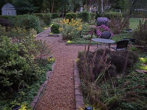 Drought-tolerant low-maintenance plantsColorful bloomsPeaceful backyardEntertaining on the porchExtensive landscapingNew blindsGravel pathways