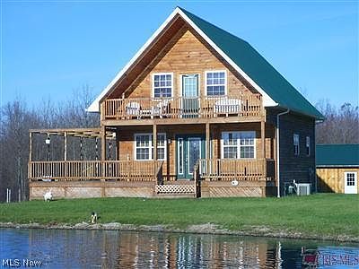 Log sided chalet cabin on 3 Acres with stocked pond, garage wrap around porch swim all year round in 12x24 indoor pool located in a 2000+ sq.ft poolhouse for entertaining. Kitchen has double oven and built in range top, bathroom has huge corner soaking tub with jets, master bedroom has balcony to overlook pond.Owner is ohio licensed real estate agent Also Septic was tested per trumbull county and owner is in process of updating will be brought to 2009 code