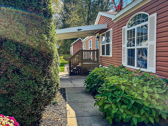 Discover this move-in-ready 3-bedroom, 2-bathroom manufactured home in the sought-after community of Valley View Estates. With 1,792 sq. ft. of space, this home offers a sunken kitchen and living room, a dining room, an office, and a cozy sitting room with an electric fireplace. Modern Kitchen: Stainless steel appliances, gas stove, refrigerator/freezer with ice maker, and dishwasher. Interior Features: Pergo flooring in main areas, carpeted bedrooms, elegant crown molding, and freshly painted walls. Master Bedroom with walk-in closet. Comfort & Efficiency: Forced air natural gas heating, central air, 4-year-old furnace, energy-efficient windows, and a 4-year-old hot water tank. Outdoor Space: Spacious deck with a screened-in room and two storage sheds. Includes two concrete parking spaces.