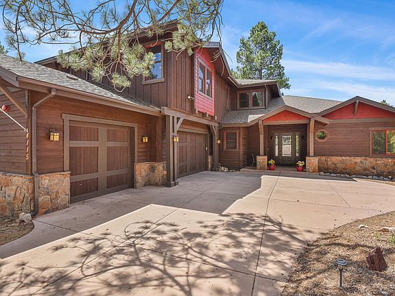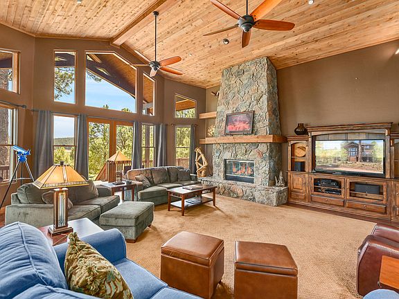 Views of two fairways, pond with waterfalls and the historic Caldera (sunken volcano) in prestigious guard gated Flagstaff Ranch Golf Club. Only one owner, this family retreat features 5 Bedrooms and 5 Bathrooms, with master on main and 3 car extended garage. Spacious upstairs bedroom can be used as kids play and sleep area, media, or craft room. Sleeps 12 easily with plenty of hot water and space. The gourmet kitchen has granite and stainless appliances. Great covered trek deck has room for viewing Elk herds run through the Caldera and Eagles in the Ponderosa lined fairways. This property is a perfect lock and leave family retreat or investment property. VRBO or rentals are OK. Come enjoy championship golf, private dining, health club, tennis, pickle ball, playground and pool