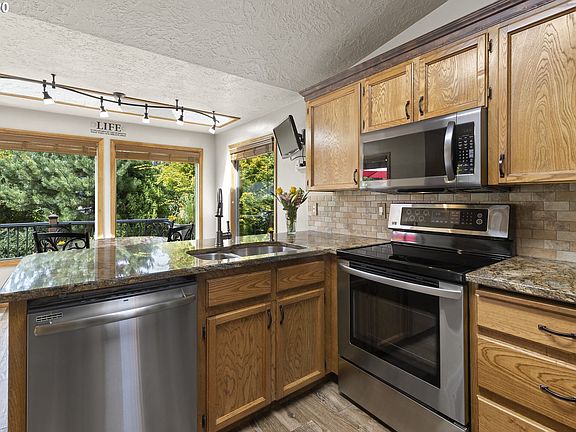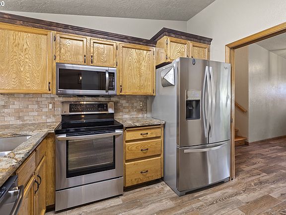 Exceptionally well maintained home on terrific, quiet street in one of the best neighborhoods in town. Popular floorplan, living room with fireplace and vaulted ceilings, wood blinds, large windows and lots of light. Updated kitchen with granite counters, tile backsplash, tile floor, stainless appliances included. Tile showers, spacious yard with deck, patio, storage shed. Good sized RV parking area. Air conditioning! Close to Powell Butte Nature Park with walking paths, wildlife.