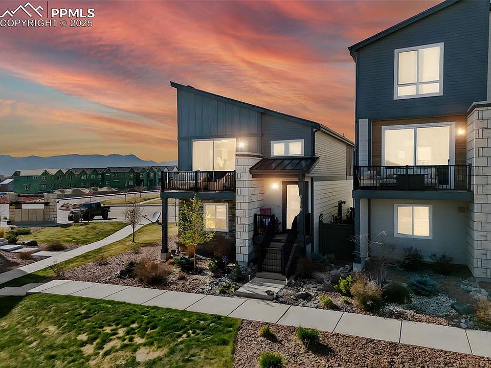 Experience breathtaking mountain views from this beautifully maintained 2-bedroom, 2-bath home located in the highly sought-after D20 school district in Colorado Springs. Enjoy panoramic views of Pikes Peak from the living room, kitchen, and both private decks—perfect for morning coffee or evening sunsets. Step inside to a spacious, light-filled living area with direct access to a private deck ideal for entertaining. The kitchen boasts premium KitchenAid appliances, ample counter space, and flows seamlessly into the open-concept living space. The primary suite features its own private deck, perfect for relaxing under Colorado skies, along with a generous ensuite bath. Additional highlights include a 2-car garage, gas grill hook-up for summer barbecues, and modern finishes throughout. This home combines comfort, convenience, and unbeatable views—all in one perfect package.