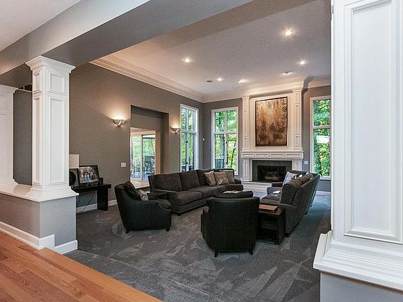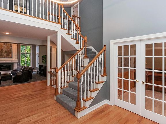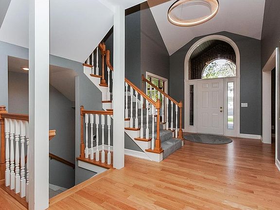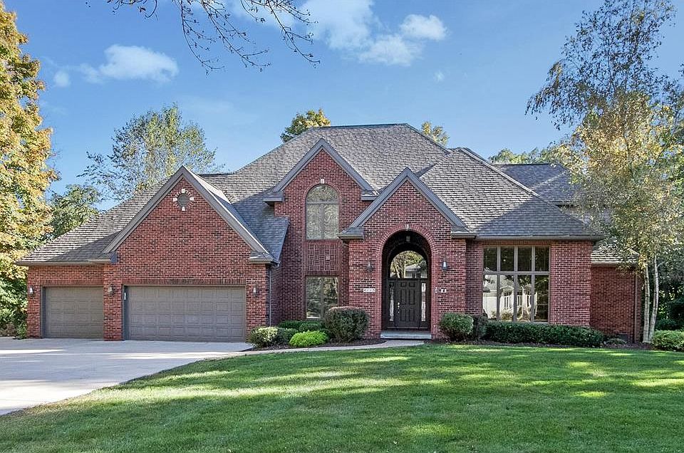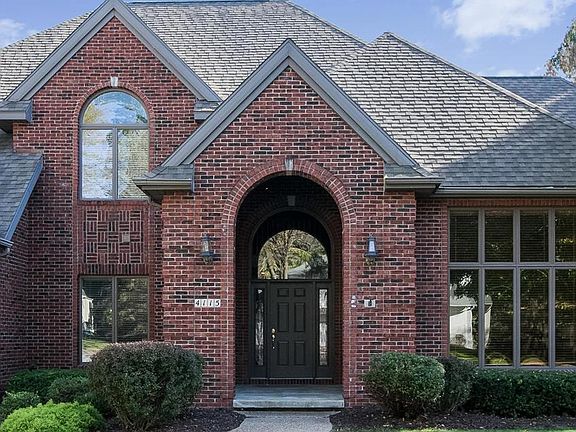 Welcome to this timeless brick home located in a prominent NE area on ½ acre overlooking natural woodlands. Recent updates include new carpet, fresh paint and wood floors on the main level. This beautiful home has amazing natural light with the abundance of windows and perfect for entertaining with an open floor plan. It features 5 bedrooms, 4.5 baths, a dramatic sunken great room with 14' ceilings, beautiful crown molding and 2 fireplaces. The spacious kitchen features a stunning vaulted ceiling, upscale appliances, a large island plus an eating area with a pyramid ceiling and gorgeous view of the private back yard. You will enjoy the spacious master suite with French doors to a private deck, a luxurious master bath with tile shower & whirlpool tub and a closet to envy. The finished walkout lower level includes a large family room with a brick fireplace, wet bar and game room. Additional features include zoned heating/cooling, security system, irrigation, wired for sound s