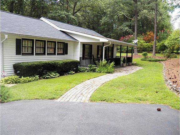 Come HOME to peaceful living! 1.98 acres of beautiful trees, flowers, figs, blueberries,& the backyard with a new fence for the family pet. This roomy ranch has real oak floors, storm windows, plantation shutters, new hot water heater, new septic system, new roof, new security system. Country kitchen is huge! Ceramic floors, double ovens, solid surface counter tops, cooktop island, large double pantry, breakfast bar, beautiful built in hutch. Updated bathrooms. Storage? YES! Split bedroom plan. Lg front porch, two decks, one of which connects with the detached garage.