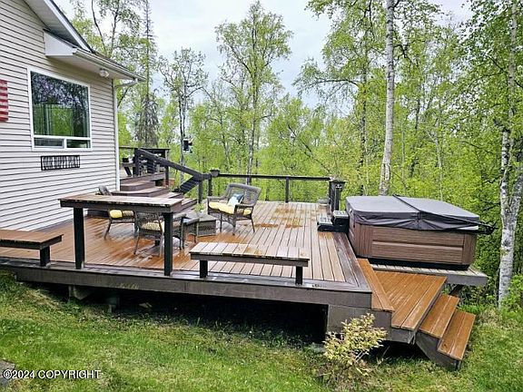 Great Family Home in wonderful neighborhood only 5 minutes outside of Soldotna. Home boasts 5 bedrooms, 3 baths w/over 3600 sq ft. Very large family room w/built-in library shelves, fireplace and downstairs walkout. Large side yard w/sunny deck.Home is on just over an acre, at the end of a cul-de-sac with landscaping, large shed, circle drive & RV parking.