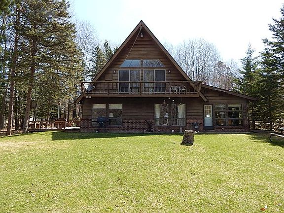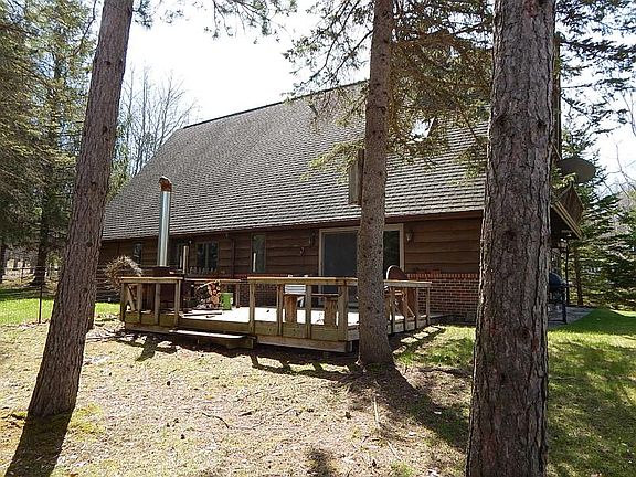 Presenting this 4-bedroom, 4 bath, Northern Retreat, that is being sold fully furnished, and move-in ready. Custom-built, this home is a one of a kind, with solid 2x6 walls and 2x12 joists, and amenities too long to list. The large Anderson windows offer spectacular views of the natural surroundings. The high-efficiency, natural gas, F/A furnace, and extensive insulation are sure to keep you cozy all winter long. Great for entertaining with a large dining room with wet bar and beverage fridge, family room with gas fireplace, and an adjacent living room. There is plenty of room to spread out on these rare 7 spacious wooded lots, a covered front deck, and a back deck with outdoor fireplace. The large kitchen boasts a maple-topped island, with the nearby huge pantry, making meal preparation convenient. There is a first-floor bedroom, as well as a library/den with plumbing available to convert to a first-floor laundry. Upstairs, are 3 more bedrooms, one being used as the master, with a balcony, large seating area, another gas fireplace, and an ensuite bath. The two additional bedrooms upstairs with another balcony deck, and adjacent bath complete the second floor. The semi-finished walk-out basement includes a game/TV room, large sauna with adjoining full bath, and a 24x24 former garage converted to a work room. This home offers one membership in Lost Lake Woods Club (upon approval), a private, gated community, with 10,000+ wooded, managed acres, an 18-hole golf course, hunting, fishing on 5 lakes, trails for ATVs and hiking, a rifle and pistol range, archery range, and much more. ONE YEAR HOME WARRANTY