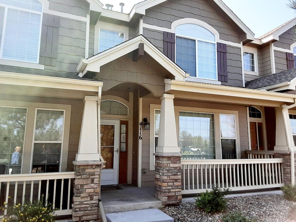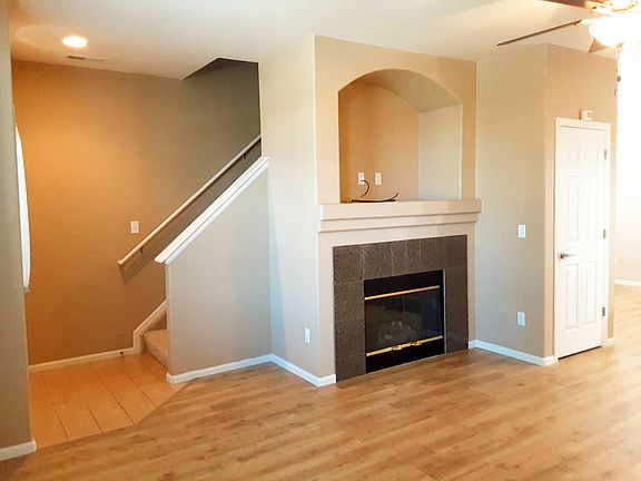 Modern style townehome across from Cottonwood Park. Upgrades in kitchen include hardwood floors, stainless steel appliances, and granite countertops. Gas Fireplace in living room. Each bedroom has their own private baths. 9 ft ceilings. 2-car garage. View of Pikes Peak. Corner of Dublin and Rangewood.