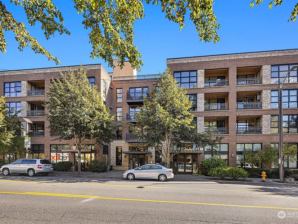 This corner penthouse is truly enchanting. A formal entry with a gallery wall and custom bookshelves lets you know, you are entering a special home. A custom kitchen brings cheer and design to the open great room with high ceilings and walls of windows - take in that Rainier view! The perfect floorplan. A well-appointed and private primary, with en-suite and walk-in closet, plus a second bedroom and bath are on opposite ends of the home. Solid surface floors throughout and built in Bluetooth audio give the final Chef's kiss. A beloved building, generous parking, and a wonderful roof-top deck with expansive 360 degree views of mountains and Sound. Walk score 96. Easy living at Alaska Junction, the vibrant heart of West Seattle. Welcome home!
