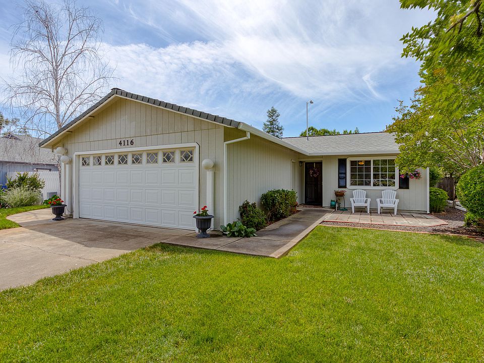 Southeast Redding CHARMER. This move in ready home is light and bright with two large bedrooms and a walk in closet. It has a wonderful covered back patio, and sweet front patio. Beautifully landscaped yard with flowering plants and trees. The attached two car garage is roomy with laundry area. Freshly painted. Great area close to Enterprise Park, Kids Kingdom and Clover Creek Preserve.