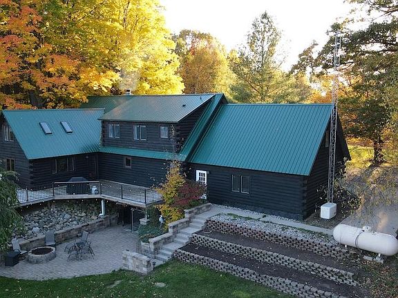 Tucked away at the end of a long, private driveway, this magnificent log home offers the perfect blend of rustic elegance and modern comfort. With 2,733 sq. ft. on the main levels and a fully finished walkout basement, you'll enjoy nearly 4,400 sq. ft. of luxurious living space, including four spacious bedrooms and three full bathrooms.