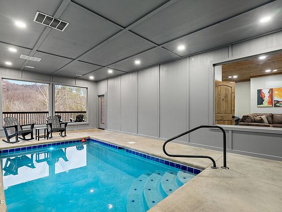 Newly Constructed 6 bedroom, 7 baths, indoor pool, and sprinkled cabin is the kind of place guests want to book! With 2 bedrooms on the main level and 4 upstairs, everyone has space to spread out while still enjoying time together. 6 full bathrooms plus a half bath make hosting large groups easy and comfortable.