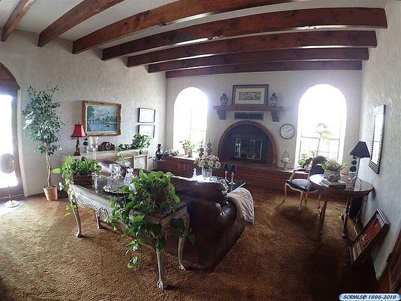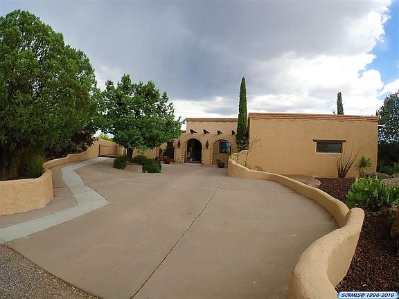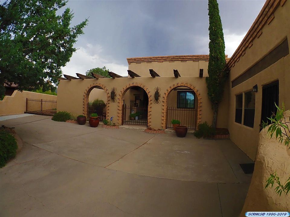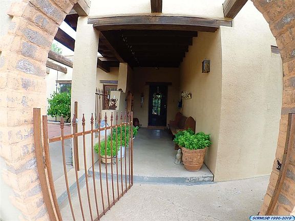THINK OLD SPANISH MISSION! This fabulous 4BR 3BA custom New Mexico home has many old-world features such as nichos, arches, beamed ceilings, brick floors, & Spanish texture. With modern appliances & LED light fixtures. Ensuite bath has separate shower & garden tub with large windows & double sinks. Separate office has built in desk & lots of cabinets. Formal dining room overlooks the living room with a gas fireplace & French doors opening to the 2 AC backyard. Kitchen opens to a huge family room with exquisite brick floors & 6 French windows. One BR & BA are located in the efficiency apt. with kitchenette, fan & a separate entrance. This apt. could be an Airbnb, a rental, guest house, or used as a 4th bedroom. Enjoy several outdoor patio areas for relaxing, entertaining, or to view the gorgeous New Mexico sunsets. Must see to appreciate the old-world charm of this beautiful one-of-a-kind home with approximately 4,000 sq. ft.