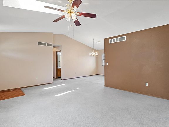 Don't miss out on this well maintained 3 bedroom ranch, located in Fairview Heights! Walking in you'll notice the vaulted ceilings and sky lights in the living room, the vaulted ceilings carry through the dining room and kitchen. The kitchen boasts a breakfast bar, gas stove, double sink, disposal, dishwasher, and opens up to the family room. In the family room you'll find an electric fireplace to cozy up next to on chilly nights. Also in the family room, through the sliding glass doors you have access to the patio and peaceful, massive back yard! Master bedroom has an ensuite with a shower, 2 additional bedrooms share a full bathroom. Main floor laundry, with hookups downstairs as well. HVAC - 2016. Water Heater - 2012. Roof - 2012.