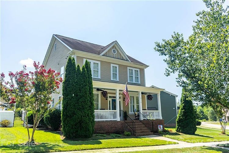 Come relax on your covered porch and enjoy the serene privacy over looking the manicured landscaping and paver pathways with in the fenced yard. This Saucey Burbank Custom built 4 3.5 home boasts loads of upgrades including 10' ceilings, gleaming hardwood flooring, ceramic tile, two piece moldings, tray ceilings, hardy plank siding, extensive landscaping with brick and vinyl fencing and brick paver walk ways to name a few! The main level features a formal dining room, private office, laundry room, Spacious kitchen with tons of cabinets w breakfast bar, dining area, great room with fireplace and powder room. The back door leaded to a second covered porch and walk way to the double garage. The second level features a master suite including garden tub, separate shower, dual vanities and walk in closet. The second and third bedrooms share a jack n jil bath with the fourth bedroom located near the third full bath. This home has been meticulously maintained and ready for new owners!