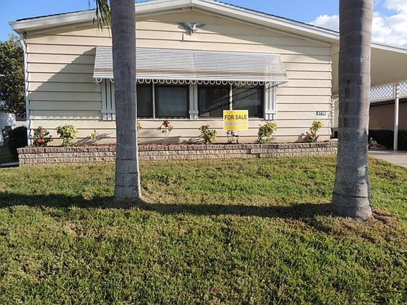 This home is in the age qualified 55+ community of Colony Cove. This home is a 1989, Palm Harbor (unfurnished), 2 Bedroom, 2 Bath, which offers a lot of open space. New laminate wood floors. New roof over. The house is a split plan set up with bedrooms on each side of the house, which is a rare find. This house is very spacious and offers plenty of room for entertaining. That extra large lanai has Windows and screens and can be used year round with its own separate heating and air conditioning. The kitchen offers a nice breakfast nook. You'll also find plenty of cabinets and a built in desk area. The house air conditioning blows cold. In the attached shed you'll find washer and dryer and a rinse sink. Colony Cove, which is a resort lifestyle community, offers four clubhouses, five heated pools, a riverfront pavilion with a fishing pier, marina, Dog Park, tennis courts, shuffleboard, new pickle ball courts, two fitness rooms, 24 hour patrol and so much more. Colony Cove lot rent is based on the location of the home. The rent may not be the lowest around however it covers everything except electricity, cable and internet. Your water, sewer, and trash pickup, all property taxes, and lawn maintenance are included with all the club amenities.