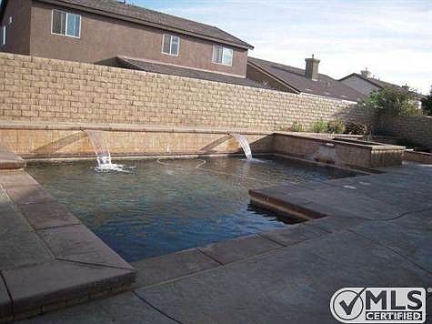 Pool Home. Upgrades galore in this elegant move-in condition 5 bedrooms and 3 full baths home plus a huge loft area,living room,family room w/fireplace, Hard wood flooring. Gorgeous roomy Kitchen with plenty of wood cabinets,granite countertops,stainless steel appliances,including double ovens, center island,walk-in pantry tile floorings.Laundry room with handy cabinets.Two AC units, window blinds all around.Three car garage, wider paved and gated RV access. Huge sturdy well built cover patio,BBQ island,fire pit and pleasant stamped concrete slab in back yard,beautiful front porch. Landscaped front and back,block walls all around. Beautiful Sparkling and custom design pool and Jaccuzi for all your summer fun. Solar system and mucha more...Come and see it you will be delighted!!