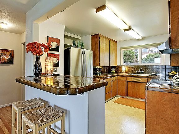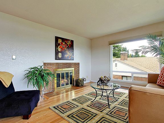 Inviting flowing main level with light filled Living & Dining room, wood burning fireplace & gorgeous refinished hardwoods. Kitchen with top of the line New Stainless Steel Appliances where the cook can interact with guests at the kitchen eating bar or living room. 2 good sized bedrooms & a full bath complete the main floor. Lower level includes a ¾ bath & laundry room, rec room & 3rd bedroom. Beautiful Mountain & peek sound views. New Double pane windows, ample yard space, patio & 1 car garage