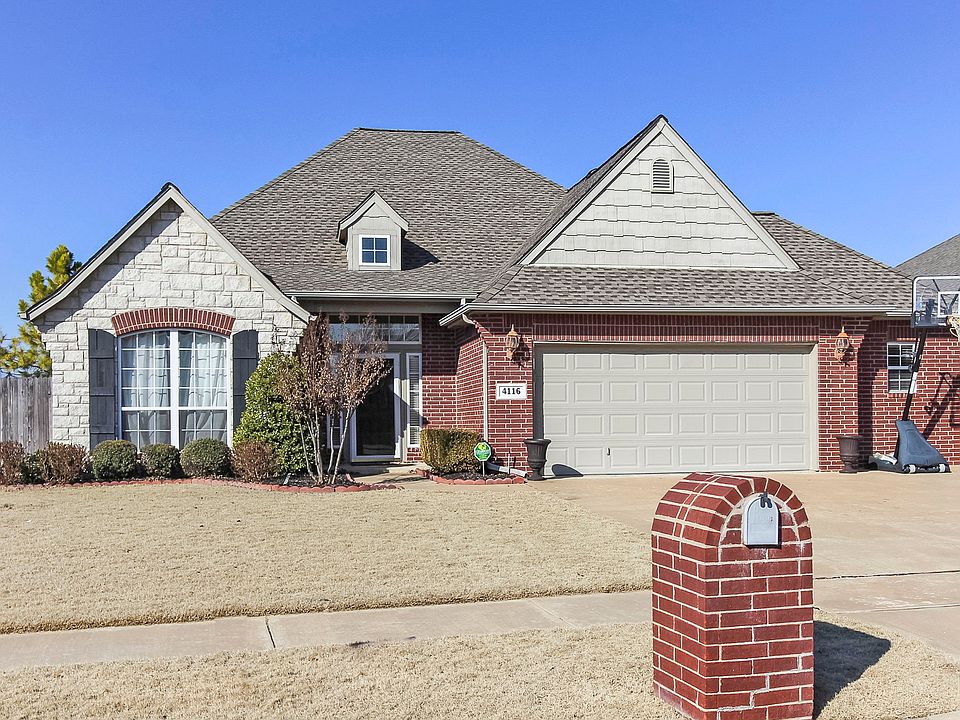 Open Floor Plan w/hardwood flooring, updated colors, granite kitchen & baths, fireplace, office, full brick, covered patio, privacy fence, corner lot in desired neighborhood. Oversized 2 car garage.
