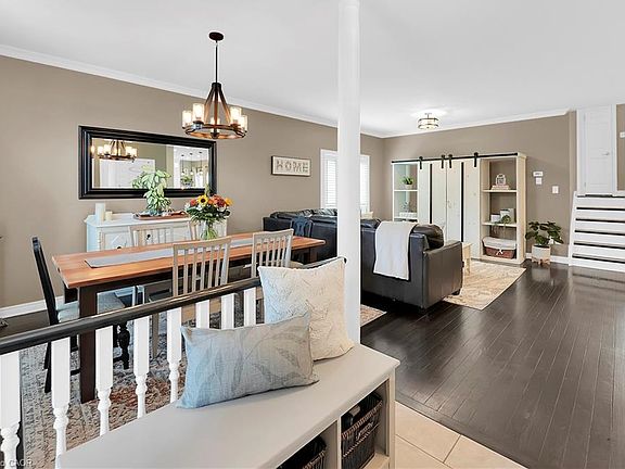 FASHION & FLAIR on a SOUGHT-AFTER COURT … This beautifully finished 4-level BACKSPLIT at 4116 Walcot Court, Beamsville blends style, comfort, and functionality in one of Niagara’s most desirable locations. With 4 bedrooms and 2 full 4-pc bathrooms, this UPDATED HOME offers flexible living for families, professionals, or downsizers seeking space without compromise. Step inside through the TRANSOM-ACCENTED front door and find yourself in an OPEN CONCEPT main level designed for connection. Distressed hardwood flooring, elegant crown moulding, and a bright Palladian window in the dining room create a timeless backdrop for everyday living. The UPDATED KITCHEN (2020) features a striking QUARTZITE island breakfast bar, crisp white cabinetry, and built-in recycling, with sliding doors leading to your OUTDOOR OASIS. Out back, the FULLY FENCED YARD is a true PEACEFUL RETREAT. A 12x12 deck anchors the space, complemented by a wooden pergola with ceiling fan & TV, plus 21’ round above-ground POOL. Back inside, the UPPER LEVEL hosts a spacious primary bedroom with double closets and ensuite privilege to a refreshed 4-pc bath with newer vanity, PLUS a second bedroom, also with double closets. On the lower level, two additional bedrooms are paired with a RENO’D 4-pc bath (2023), ideal for teens, guests, or extended family. The basement level completes the home with a cozy RECREATION ROOM, laundry, and storage. With UPDATES including roof (2012), furnace (2015), and A/C (2022), this home has been thoughtfully maintained for peace of mind. Situated near the Niagara Fruit & Wine Route, this property offers the perfect balance of small-town charm and commuter convenience - just minutes to the QEW, shopping, parks, great schools and restaurants, plus 10 minutes to the Grimsby GO Station, 30 minutes to Niagara Falls and the U.S. border, and 1 hour to Toronto. CLICK ON MULTIMEDIA for video tour, drone photos, floor plans & more.